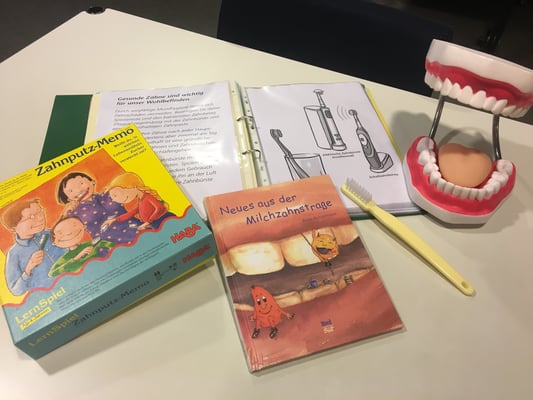 Lange wurde in der Arbeitsgruppe überlegt, Ideen gesammelt und Unterlagen zusammengestellt. Nun wurde der Zahnputzkoffer fertig gestellt und wir freuen uns, dass dieser nach den Herbstferien in den ersten beide Kindergärten als Projekt gestartet wird. Ziel dieses Projektes ist es, die Kinder aber auch die Eltern rund um das Thema Zähne, Zahnpflegt und die Auswirkungen der Ernährung auf die Zähne zu sensibilisieren.