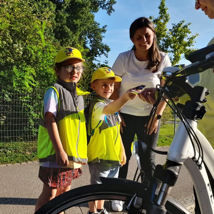 Umso wichtiger ist es, dass versiertere Verkehrsteilnehmende besonders achtsam unterwegs sind. Um die Sensibilisierung zu erhöhen, führte der Elternrat die Verkehrsaktion vom Vorjahr, zusammen mit dem Schulpolizisten Roland Berchtold, engagierten Eltern und Kindergartenkindern, erneut durch.