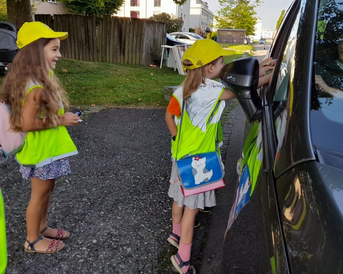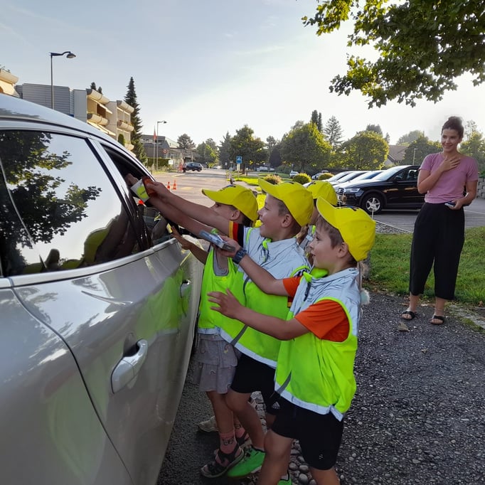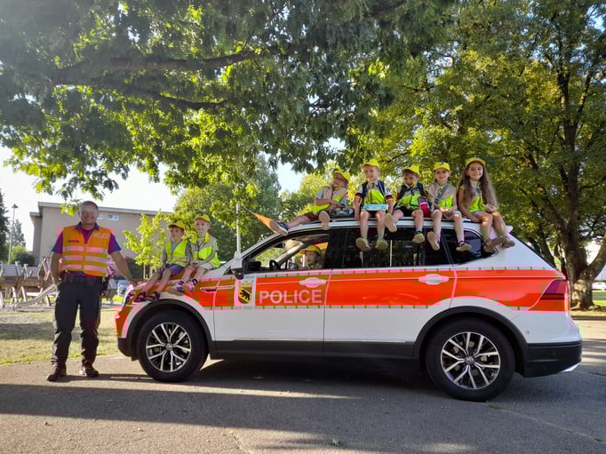Die Aktion wurde grosszügig unterstützt von Mobiliar Versicherung, Dorfbeck Nyfeler und TCS – herzlichen Dank! Für die Kinder waren die Anwesenheit des Schulpolizisten, das emsige Treiben auf der Strasse und die Inspektion des Polizeiautos sehr eindrücklich. Erste Rückmeldungen berichteten bereits, einen erfreulichen Rückgang der Elterntaxis.