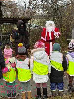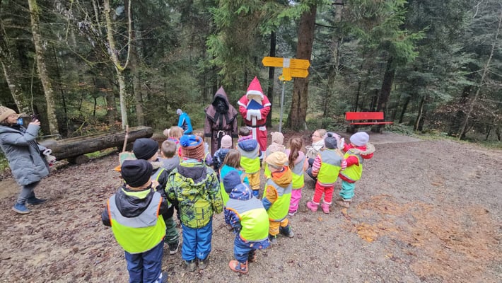 Als der Samichlous ihnen ihren prall gefüllten Sack überreichte, mit Nüssli, Schöggeli und vielem mehr zum Schnouse, leuchteten die Augen noch ein bisschen mehr. Voller Freude trugen sie ihre Überraschungen zurück in den Kindergarten.